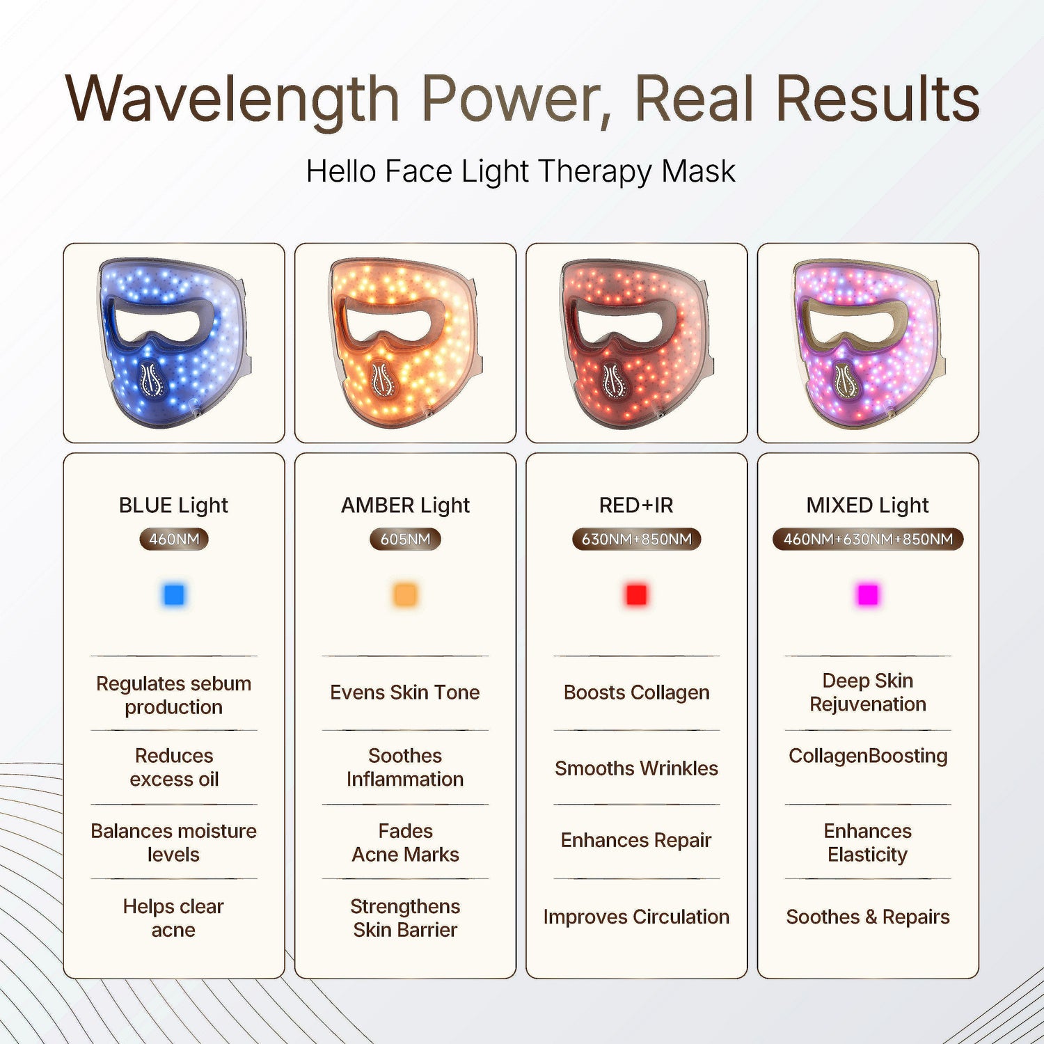 We pride ourselves on clinical-grade power. The Hello Face Mask delivers an irradiance of 50mW/cmΒ², ensuring the light energy actually reaches the target cells effectively, compared to standard masks which often average around 30mW/cmΒ².